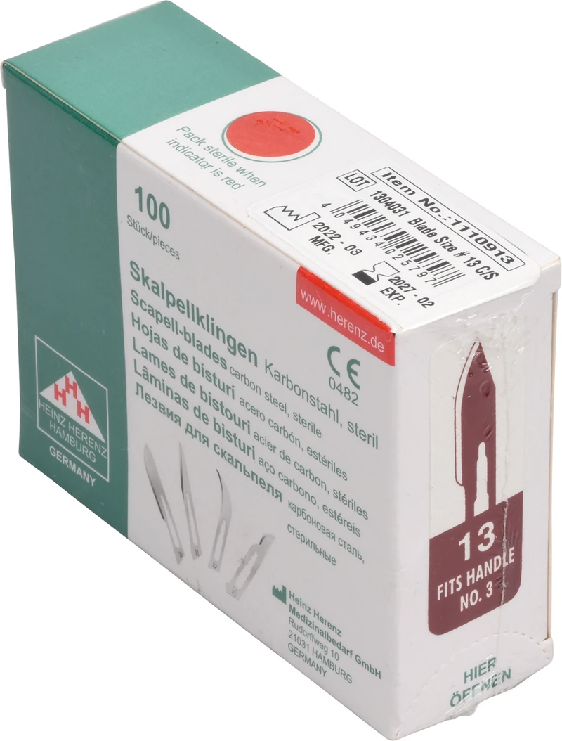 Skalpellklingen Packung 100 Stück Nr. 13, 110-113, Steril