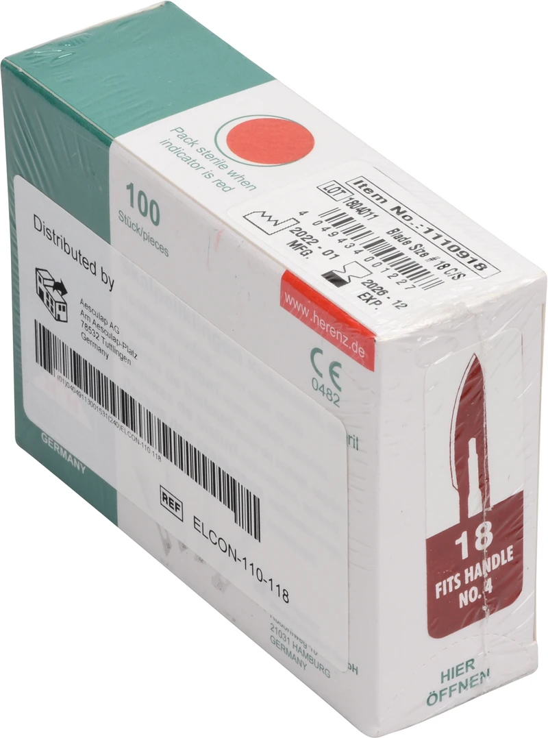 Skalpellklingen Packung 100 Stück Nr. 18, 110-118, Steril