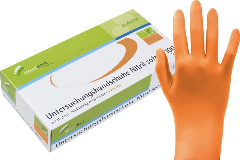 smart Nitrilhandschuhe Soft PF Packung 100 Stück puderfrei, orange, M