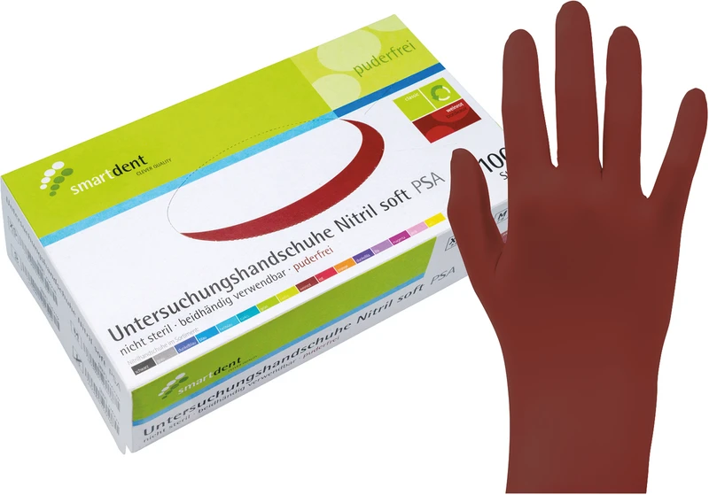 Produktinformationen "smart Nitrilhandschuhe Soft PF Packung 100 Stück puderfrei, weinrot, S"