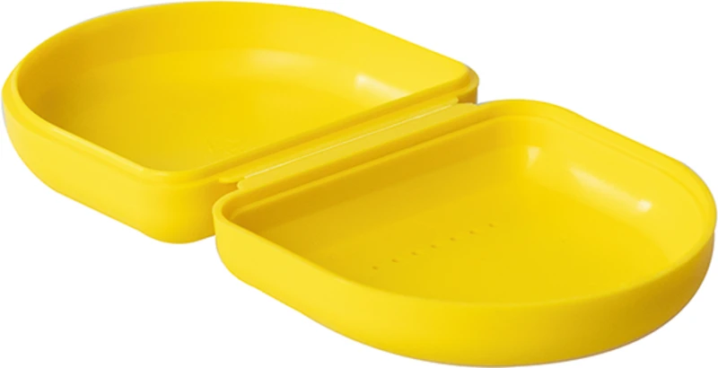 Die smartCase Schienendosen dienen zur sicheren Aufbewahrung sowie zum Transport von Zahnspangen und Schienen (Okklusionsschienen, Aligner) und sind aus 100%igem recyceltem Material hergestellt. Die gelochte Ober- als auch Unterschale dienen der Belüftung für eine hygienische Trocknung. Maße: ca. 30 x 73 x 78 mm (H x B x T).