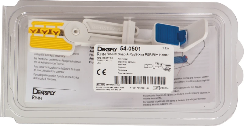 Röntgenhalter für Filme und Speicherfolien, gepolsterte Halterung hält Filme und Speicherfolien sicher fest, ohne den Röntgenträger zu beschädigen. Abgewinkelte Bissplatte ermöglicht exakte Röntgenaufnahmen bei Halbwinkeltechnik. Röntgenträger kann abgewinkelt werden für schwer zugängliche Stellen.