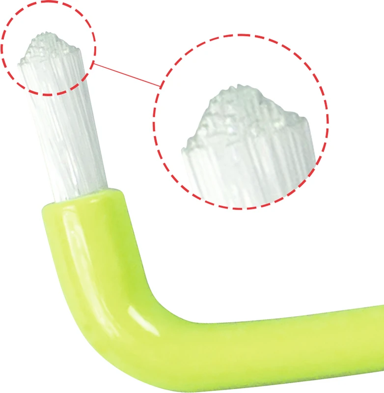 - Soft: Mit handgefertigten weichen Borsten. Der Bürstenkopf hat eine spitz zulaufende Dachform, für die punktgenaue Reinigung der Molar Vertiefungen, Fissuren und Brackets. Besonders geeignet für das Reinigen von schwer zu erreichenden Stellen, welches durch den angewinkelten Griff zum Kinderspiel wird.