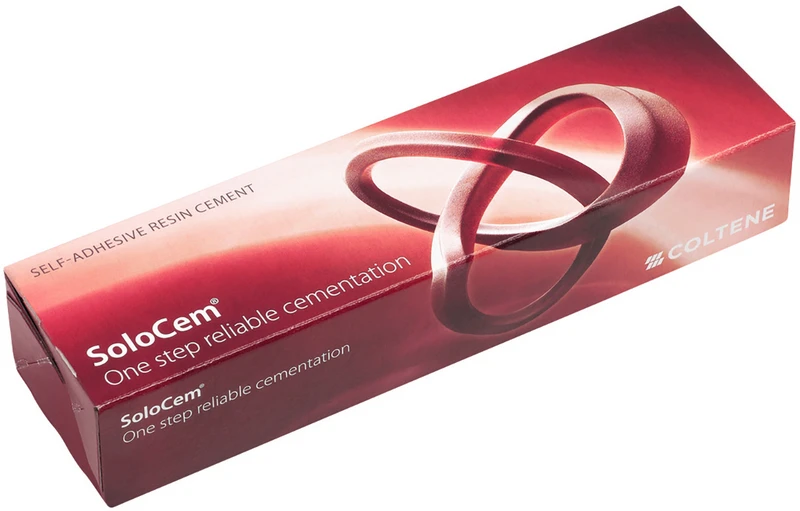 SoloCem® selbstadhäsiver und dualhärtender Zement auf Kompositbasis. Zuverlässiges Zementieren in einem Schritt Dank seinen selbstadhäsiven Eigenschaften kommt SoloCem ganz ohne separates Bonding aus und überzeugt dabei mit einem zuverlässigen Verbund zwischen verschiedenen Materialien. Zudem vereinfachen die optimale Verarbeitungszeit, die einfache Überschussentfernung sowie die Automixspritze mit den gebrauchsfertigen Mischkanülen die Anwendung von SoloCem. SoloCem ist für die Zementierung von Wurzelstiften, Kronen, Brücken, Inlays und Onlays geeignet. Sein antibakteriell wirkendes Zinkoxid, der geringe Schrumpf und die hervorragenden Haftwerte sind Garant für sichere und dichte Restaurationen. Der Zement ist in drei Farben erhältlich: dentin, white opaque und trans. white opaque eignet sich hervorragend zur Wurzelstift-Zementierung.