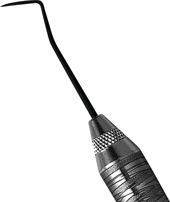 Die nicht-haftende Beschichtung aus Aluminium-Titanium-Nitrid bei Satin Steel XTS Instrumenten ist perfekt für das Konturieren der Zahnanatomie bei der Aufbringung von Komposit-Materialien. Die schwarze Beschichtung verbessert den Kontrast zwischen Instrumentenspitze und Zahn.