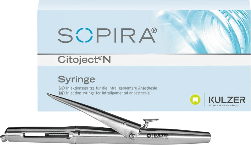 SOPIRA® Citoject N für die intraligamentäre Anästhesie überzeugt durch innovatives Design in Edelstahl und ermöglicht eine angenehmere Behandlung für den Patienten. Die ausbalancierte Gewichtsverteilung sorgt für eine sichere Handhabung und punktgenaues Arbeiten. Die Reinigung und Sterilisation ist zusammen mit allen anderen Edelstahlinstrumenten in der Praxis ohne Einschränkung möglich.