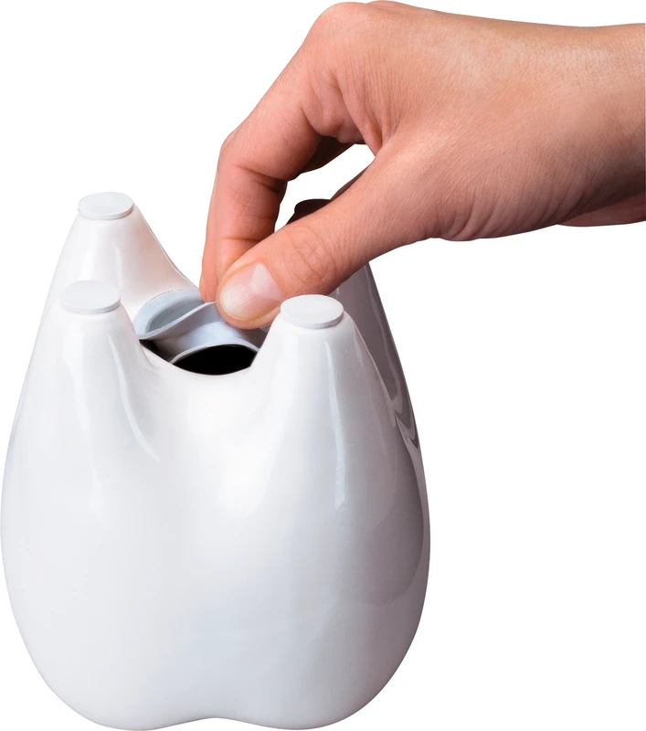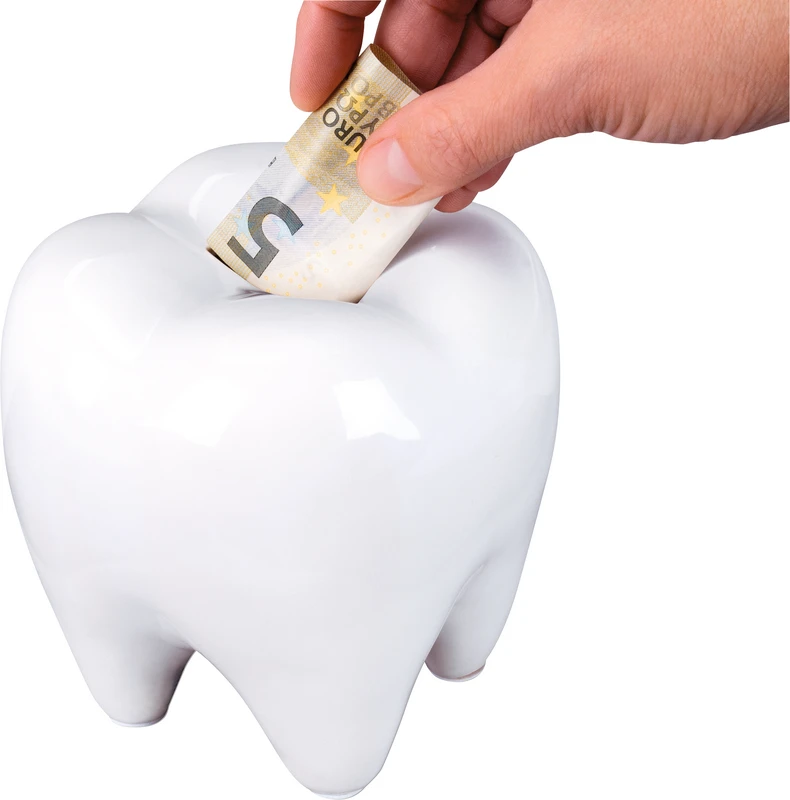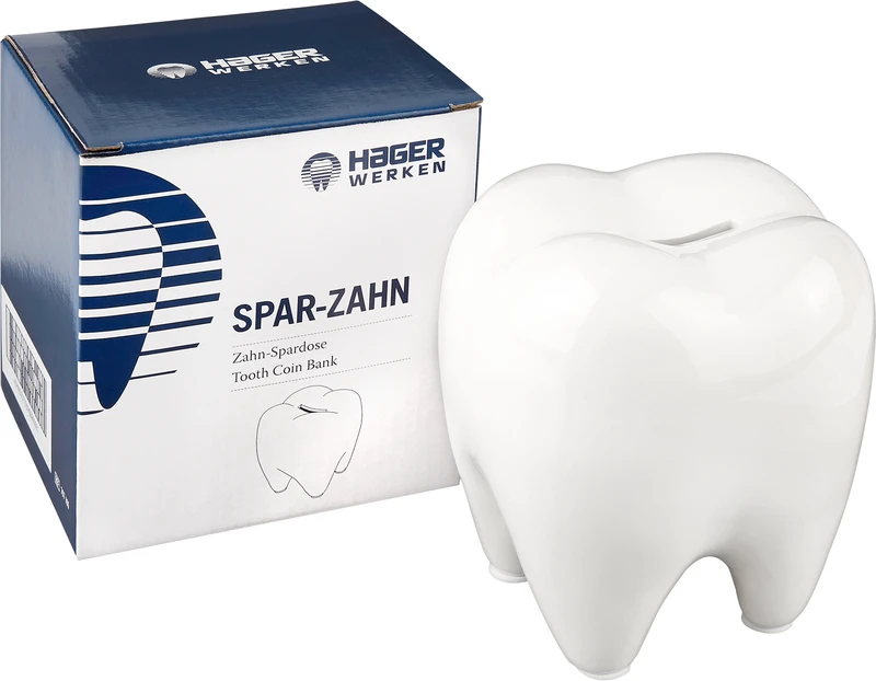 Spardose im Zahnform - Robustes, keramikartiges Material mit großer Öffnung, auch für Geldscheine geeignet.