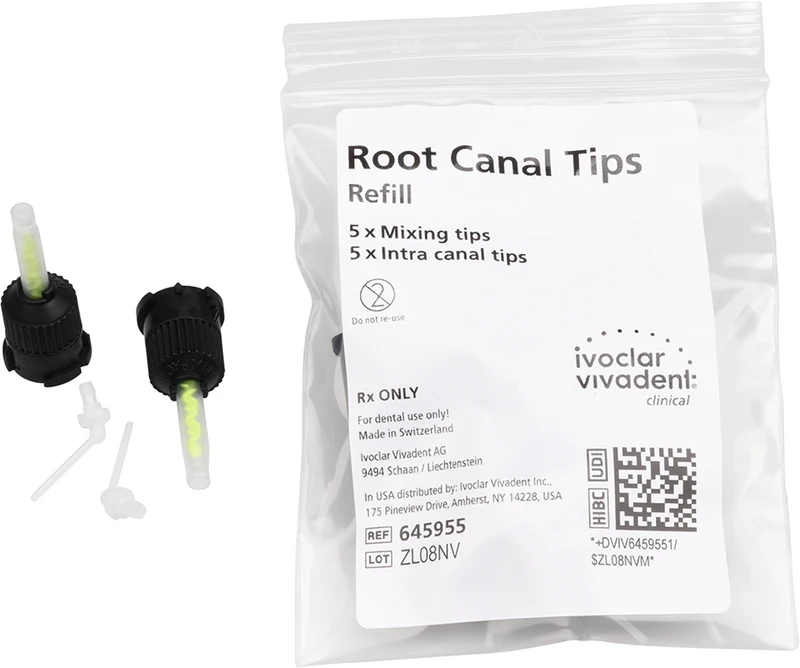 Packung 3 x 9 g Spritze gelb, 3 x 15 Mischkanülen, 5 Wurzelkanal Kanülen