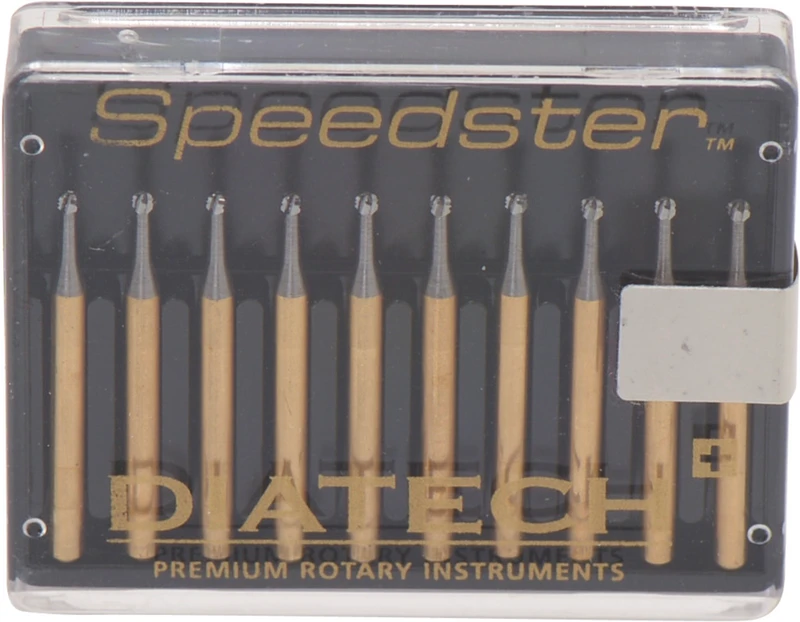 SPEEDSTER Bohrer haben ein hochentwickeltes, technisches Design, welches die rasante Entfernung von folgenden Materialen gewährleisten: Amalgam, Gold, Keramik, Schmelz sowie VMK = Verbund-Metall-Keramik. Die computergestalteten Schneidekanten arbeiten rundlaufgenauer, verhindern Vibration, schneiden länger und reduzieren die Präparations- sowie Behandlungszeit! Ausführungen: S1 - Kugel (rund) kreuzverzahnt, S2 - umgekehrter Kegel kreuzverzahnt, S3 - Birne kreuzverzahnt, S4 - Zylinder rund kreuzverzahnt, S6 - Konus kreuzverzahnt. Drehzahlen