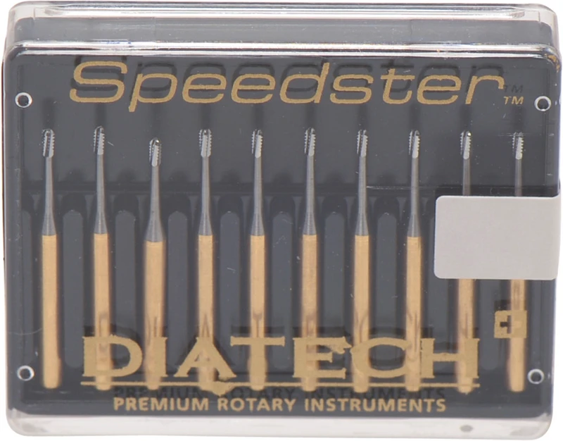 SPEEDSTER Bohrer haben ein hochentwickeltes, technisches Design, welches die rasante Entfernung von folgenden Materialen gewährleisten: Amalgam, Gold, Keramik, Schmelz sowie VMK = Verbund-Metall-Keramik. Die computergestalteten Schneidekanten arbeiten rundlaufgenauer, verhindern Vibration, schneiden länger und reduzieren die Präparations- sowie Behandlungszeit! Ausführungen: S1 - Kugel (rund) kreuzverzahnt, S2 - umgekehrter Kegel kreuzverzahnt, S3 - Birne kreuzverzahnt, S4 - Zylinder rund kreuzverzahnt, S6 - Konus kreuzverzahnt. Drehzahlen