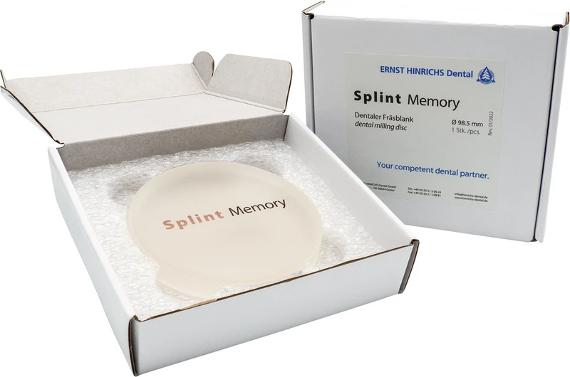 Ein anpassungsfähiger, intelligenter und langlebiger Blank für höchsten Tragekomfort. Splint Memory gleicht Ungenauigkeiten durch seinen patentierten Thermemory-Effekt aus. Das Material wird bei Körpertemperatur flexibel und passt sich somit optimal an die Zahnoberfläche an. Vorteile: