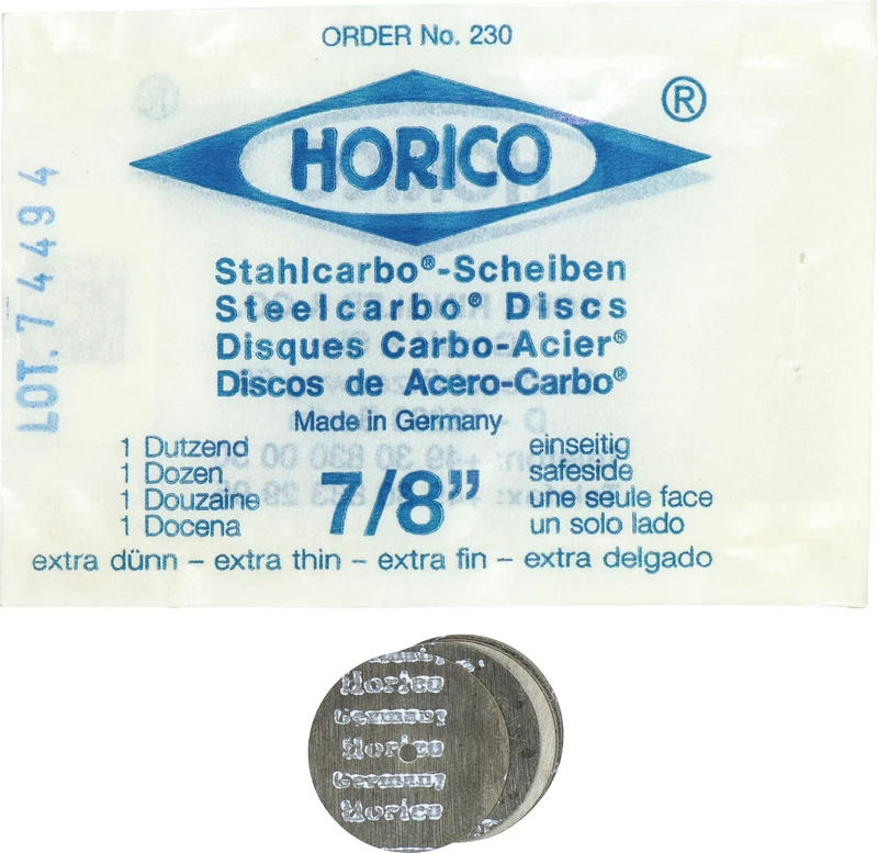 Stahlcarbo®-Scheiben Packung 12 Stück einseitig, extra dünn, Ø 22 mm x 0,15 mm