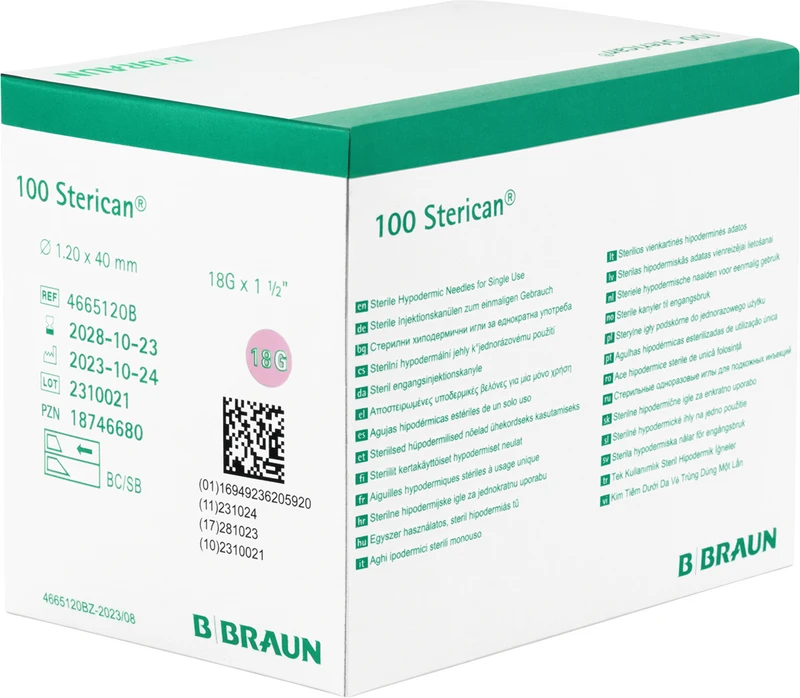 Sterican Kanüle Packung 100 Stück rosa, G18 Ø 1,2 x 40 mm