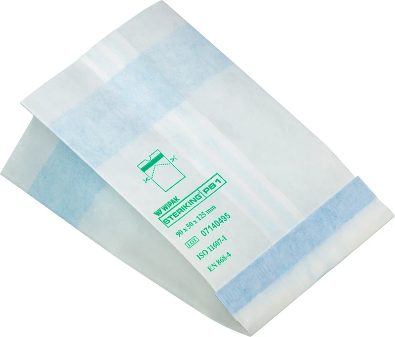 Papierbeutel mit heißsiegelbarer Oberseite für die Dampfsterilisation.