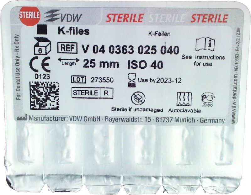 STERILE K-Feilen Blisterpackung 6 Stück 25 mm ISO 040
