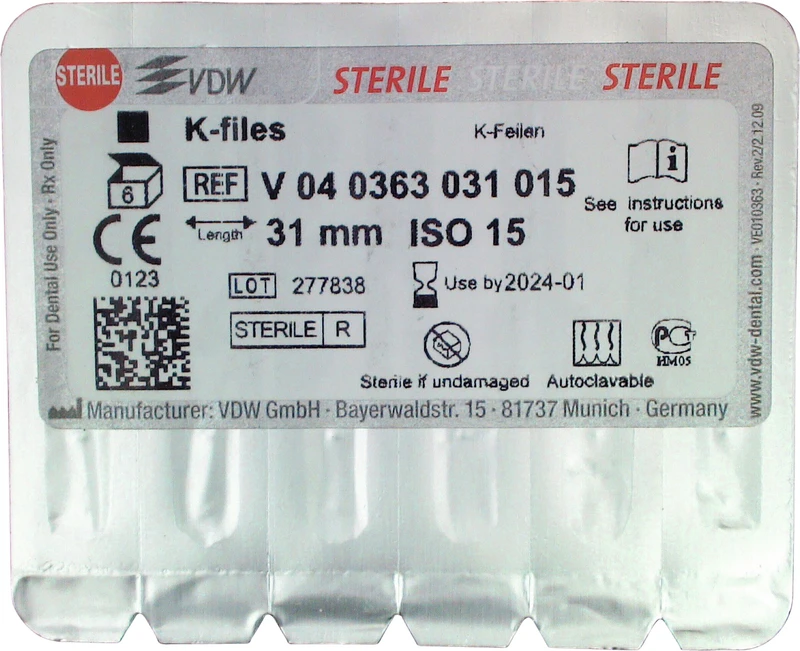 STERILE K-Feilen Blisterpackung 6 Stück 31 mm ISO 015