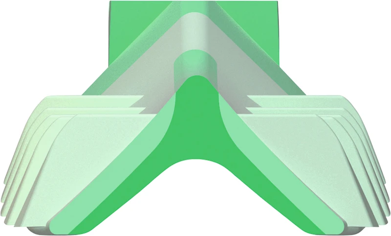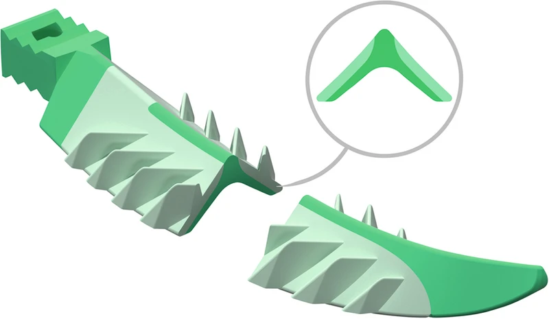 Strata-G-Keile nutzen Soft-Face Materialien und fortschrittliches Design, um eine bessere Anpassung zu gewährleisten. Weiche, retentive Lamellen klappen beim Einsetzen der Keile sanft nach unten und federn zurück, sobald sie den Interproximalraum verlassen haben und fixieren die Strata-G Keile an ihrem Platz. Die umgekehrte V-Form sitzt tiefer und die Abdichtungen sind interproximal tiefer, während die flexiblen Seitenwände und die Soft-Face TPE-Ummantelung den Strata-G-Keilen ermöglichen, sich leicht an Konkavitäten und Unregelmäßigkeiten anzupassen. Das glatte Hohlraum-Design ermöglicht das Stapeln von Strata-G Keilen. Diese Funktion ist äußerst hilfreich bei Zahnfleischrückgang oder wenn eine gleichzeitige Verkeilung von bukkal und lingual gewünscht ist.