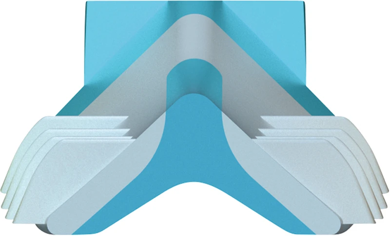 Strata-G-Keile nutzen Soft-Face Materialien und fortschrittliches Design, um eine bessere Anpassung zu gewährleisten. Weiche, retentive Lamellen klappen beim Einsetzen der Keile sanft nach unten und federn zurück, sobald sie den Interproximalraum verlassen haben und fixieren die Strata-G Keile an ihrem Platz. Die umgekehrte V-Form sitzt tiefer und die Abdichtungen sind interproximal tiefer, während die flexiblen Seitenwände und die Soft-Face TPE-Ummantelung den Strata-G-Keilen ermöglichen, sich leicht an Konkavitäten und Unregelmäßigkeiten anzupassen. Das glatte Hohlraum-Design ermöglicht das Stapeln von Strata-G Keilen. Diese Funktion ist äußerst hilfreich bei Zahnfleischrückgang oder wenn eine gleichzeitige Verkeilung von bukkal und lingual gewünscht ist.