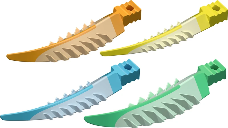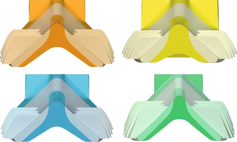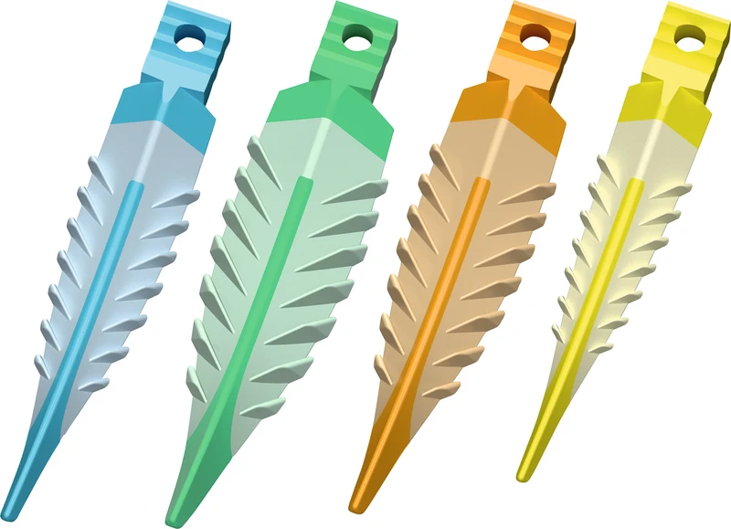 Strata-G-Keile nutzen Soft-Face Materialien und fortschrittliches Design, um eine bessere Anpassung zu gewährleisten. Weiche, retentive Lamellen klappen beim Einsetzen der Keile sanft nach unten und federn zurück, sobald sie den Interproximalraum verlassen haben und fixieren die Strata-G Keile an ihrem Platz. Die umgekehrte V-Form sitzt tiefer und die Abdichtungen sind interproximal tiefer, während die flexiblen Seitenwände und die Soft-Face TPE-Ummantelung den Strata-G-Keilen ermöglichen, sich leicht an Konkavitäten und Unregelmäßigkeiten anzupassen. Das glatte Hohlraum-Design ermöglicht das Stapeln von Strata-G Keilen. Diese Funktion ist äußerst hilfreich bei Zahnfleischrückgang oder wenn eine gleichzeitige Verkeilung von bukkal und lingual gewünscht ist.