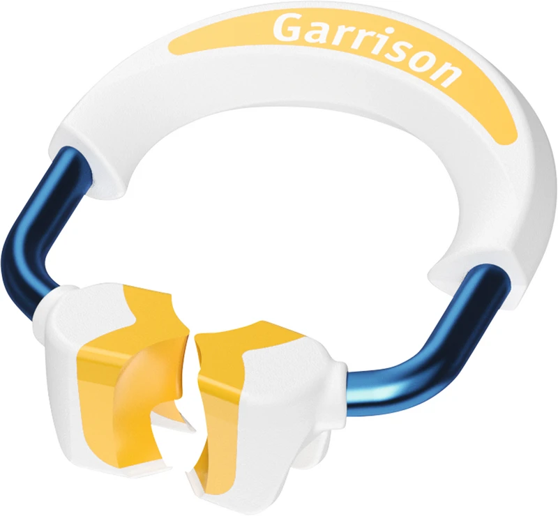 Langlebigeres Design, Fortschrittliche Materialien ergeben zusammen mit dem Design unseren bislang langlebigsten und zuverlässigsten Separierring. Starke Separationskraft - dennoch einfacher zu öffnen. Gezogener Nitinol-Draht, für den Nickel und Titan auf molekularer Ebene verbunden werden, bietet erstklassige Leistung, erfordert jedoch weniger Kraftaufwand zum Öffnen. Die von Garrison eigenentwickelte StrataSet-Behandlung des Nickel-Titan Drahts maximiert die Langlebigkeit dieses fortschrittlichen Materials. Die Ringe sind leichter zu öffnen und halten ihre Spannung länger. Dank der ultra-haltbaren PEEK-Verstärkung auf der Rückseite des Rings kann Strata-G einen höheren Prozentsatz an Anfangsfestigkeit über einen längeren Zeitraum beibehalten, als nicht-verstärkte Ringe. Die eigenentwickelten StrataBond-Silikon/PEEK-Spitzen halten Hunderten von Anwendungen stand.