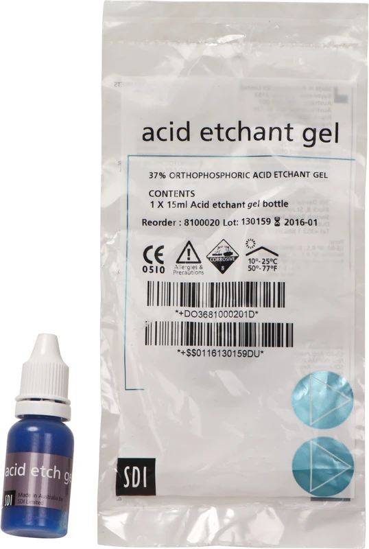 37 % Phosphorsäure. Blaues, tixotrophes Gel. Keine Beeinträchtigung des Adhäsivs. Auswahl an niedriger und hoher Viskosität. Schafft Mikroporen an der Schmelzoberfläche und entfernt die Schmierschicht um die Tubuli frei zu legen.