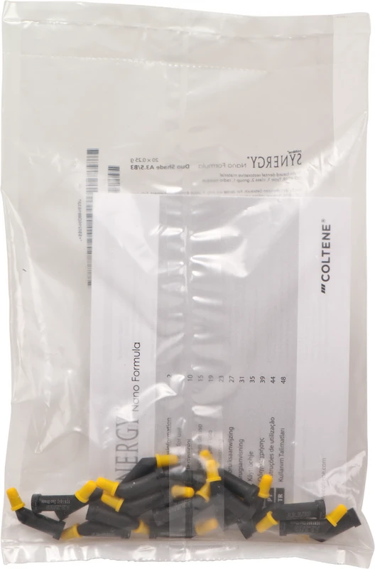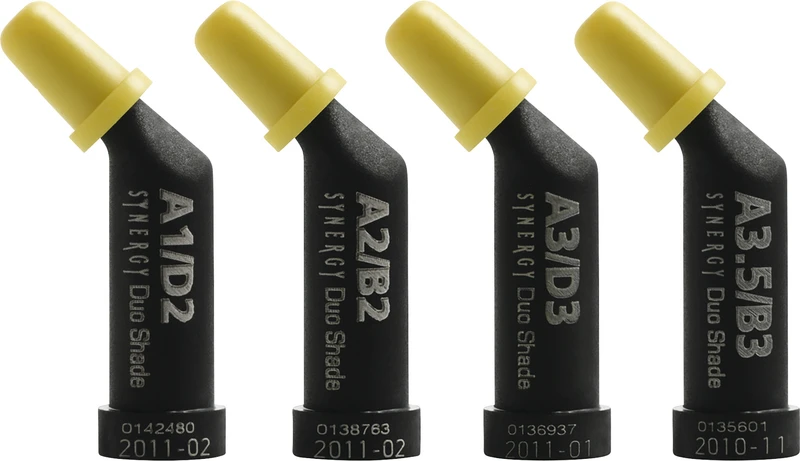 - SYNERGY® Nano Formula Duo Shade, für alle Anwendungen, deckt eine breite Palette von Zahnfarben mit weniger Spritzen ab