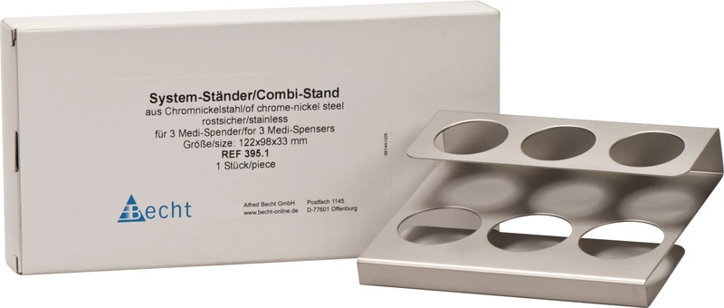 Der System-Ständer für das Medi-System ermöglicht eine feste Fixierung der Dappengläser von den jeweiligen Medi-Spendern. Rostsicher.
