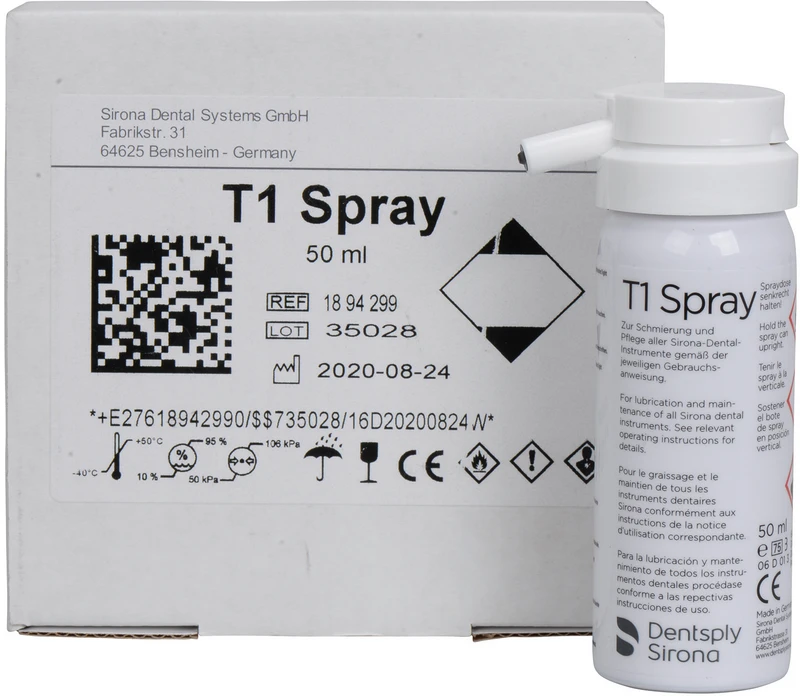 Spray zur Reinigung und Pflege von Dentsply Sirona Turbinen sowie Hand- und Winkelstücken.