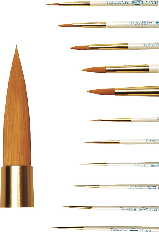 Kunsthaarpinsel mit gleichmäßig spitzer Pinselform. Durch die konisch geformten Fasern ist ein dichterer Haarbesatz möglich. Elastisch, stabil und langlebig. Kein Spreizen und Spalten der Faser.