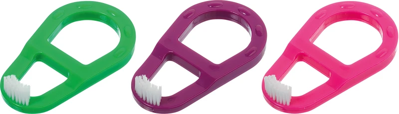 Die TANDEX Baby Safe Zahnbürste kann schon vor dem ersten Zahn und bis zum zweiten Lebensjahr verwendet werden. TANDEX Baby Safe hat sehr weiche Borsten und ist perfekt geeignet als Spielzeug, Beißring und zur Gewöhnung an das Gefühl eine Zahnbürste im Mund zu haben. Der integrierte Beißring stimuliert die Gingiva, mildert den Juckreiz beim Milchzahndurchbruch und erleichtert den Eltern das Zähneputzen. Farblich sortiert. Keine Farbauswahl möglich.