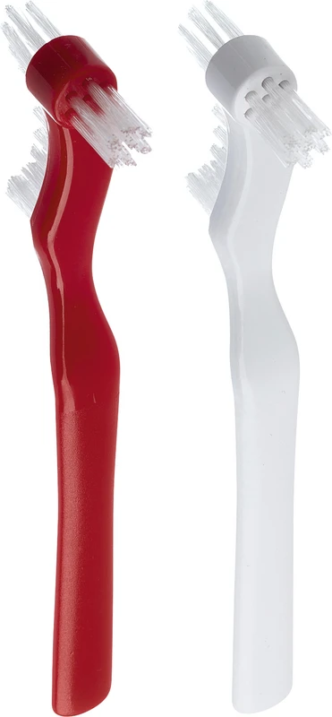 Die große Bürste eignet sich, durch ihre besondere Schnittform, hervorragend für die Reinigung der Gaumenplatte und der Außenseiten der Prothese. Die kleine Bürste ist für die Reinigung der Protheseninnenseiten, sowohl für die Unter- als auch der Oberkieferprothese, gedacht. Der ergonomische und breite Griff ermöglicht, auch motorisch eingeschränkten Menschen, eine einfache Handhabung.