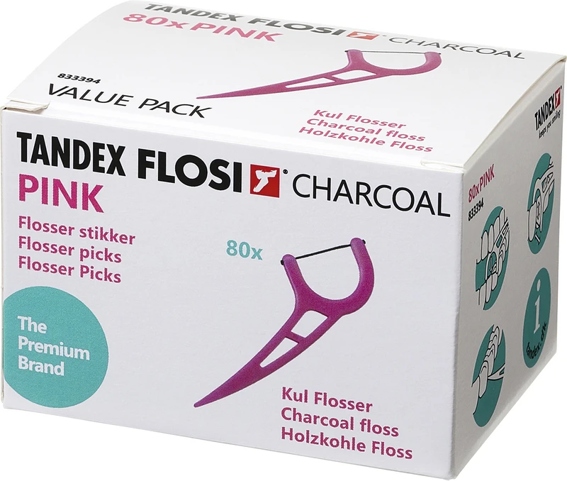 Die Flosser Picks sind ein hervorragend durchdachtes Werkzeug, für die Pflege der Zahnzwischenräume. Der Griff der TANDEX Flosser Picks hat gleich mehrere Funktionen. Zum einen ermöglicht er die Zahnseide einhändig zu verwenden und zum anderen kann das spitz zulaufende Ende als Zahnstocher verwendet werden. Die auf der Zahnseide aufgetragene Holzkohle kann dazu beitragen die Bakterienmenge, in den Zwischenräumen, zu reduzieren.