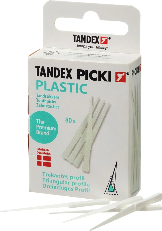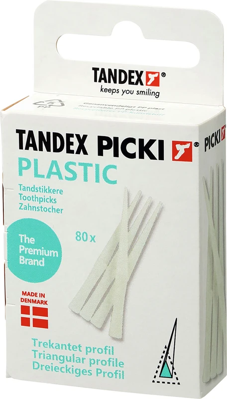 Die TANDEX Picki Kunststoffzahnstocher sind dreieckig, dünn und biegsam um sich optimal in den Zahnzwischenraum einzupassen und eine effiziente Reinigung zu ermöglichen. TANDEX Kunststoffzahnstocher sind besonders einfach in der Handhabung.
