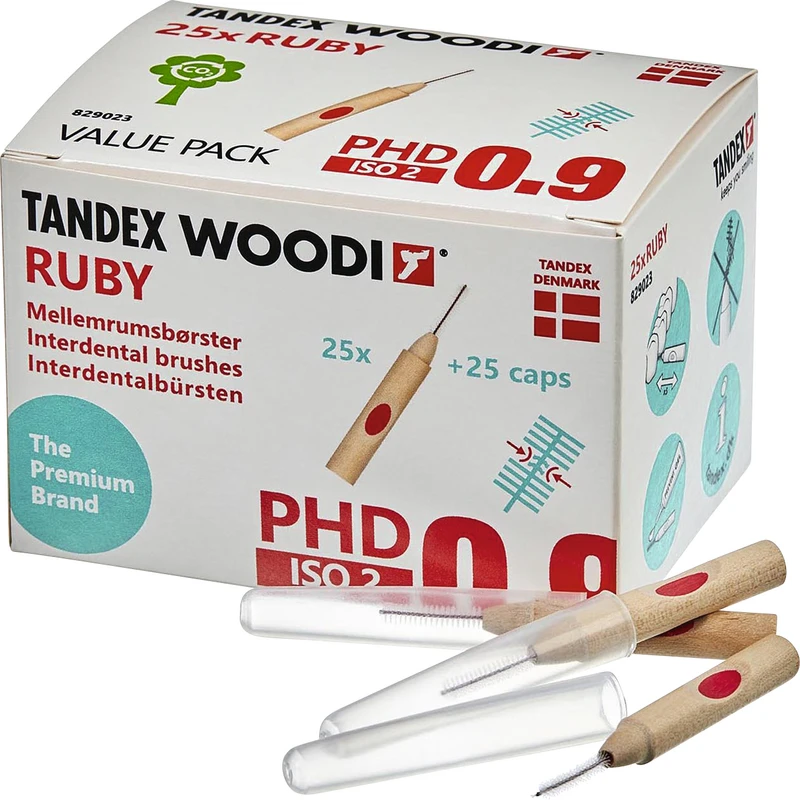 TANDEX WOODI Interdentalbürste Value Pack 25 Stück ruby, PHD 0.9, ISO 2