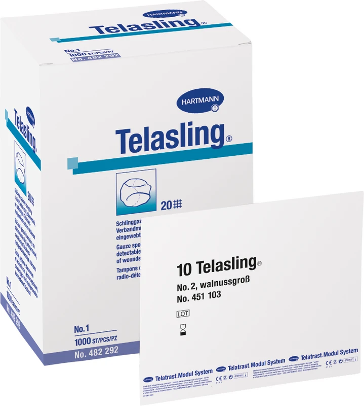 Telasling® Schlinggazetupfer mit eingewebtem Telatrast® Röntgenkontrastfaden sind aus nur einem Mullstück handgedreht. Das verleiht ihnen eine höhere Festigkeit, was speziell bei der Blutstillung und Handhabung von Vorteil ist. Geliefert werden die sterilen Telasling® Schlinggazetupfer in einer doppelten Peelpackung mit Doppel-Kontrollkarten. Auch als unsterile Variante erhältlich.