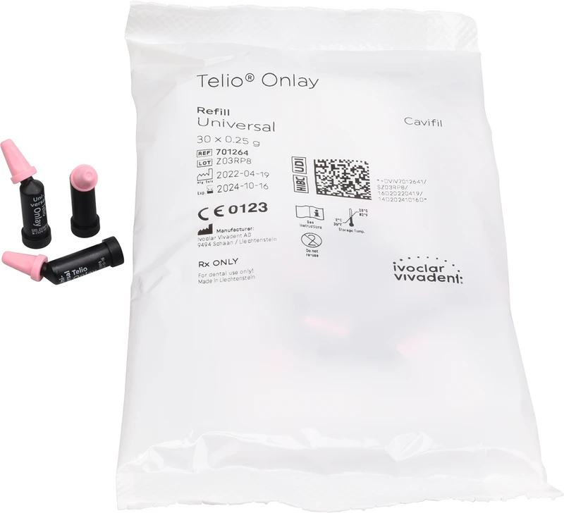 Telio® Inlay und Telio® Onlay sind lichthärtende Einkomponenten-Materialien, mit denen Kavitäten der Klasse I und der Klasse II temporär versorgt werden können und zwar ohne zusätzliche Verwendung eines provisorischen Zements. Telio® Inlay und Onlay runden das Telio®-System ab, das bisher umfassendste Produkt-System für die temporäre Versorgung. Dank seines weich-elastischen Endzustandes eignet sich Telio® Inlay insbesondere für tiefe, parallelwandige Inlay-Präparationen selbst wenn die Präparationen geringfügige Unterschnitte aufweisen. Zähnärzte können mit Telio® Inlay aber auch vorgefertigte Polycarbonat-Kronen unterfüttern oder Implantatschrauben-Löcher verschliessen. Telio® Onlay hingegen ist hart-elastisch und kommt vor allem für grössere sowie weniger retentive Präparationen wie Onlays zum Einsatz.