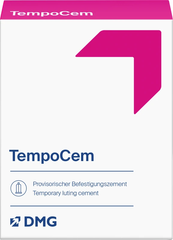 TempoCem Automix eugenolhaltiger temporärer Befestigungszement für provisorische und permanente Kronen, Brücken, Inlays, Onlays, sowie temporäre Befestigung von implantatgetragenem Zahnersatz. Automatisches Mischen und direkte Applikation. Geringe Filmdicke.