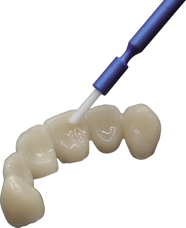 Lichthärtender Einkomponentenlack zur Oberflächenversiegelung von provisorischen Kronen und Brücken. Paint on Politur für die Chairside Anwendung durch Blaulicht-Polymerisation. Brillantes, natürliches Finish, ohne mechanisches Polieren. Erzeugt eine sehr harte und glatte Oberfläche. Schützt zusätzlich gegen Plaqueablagerungen und Verfärbungen. Hochglänzend, farblos, starke Haftung.