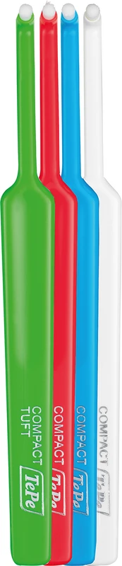 Diese Einbüschelbürste hat einen kleinen, runden, kompakten Bürstenkopf und unterstützt dadurch eine sanfte und effektive Reinigung der Zähne. Besonders gut für die schwer zugänglichen Bereiche geeignet.