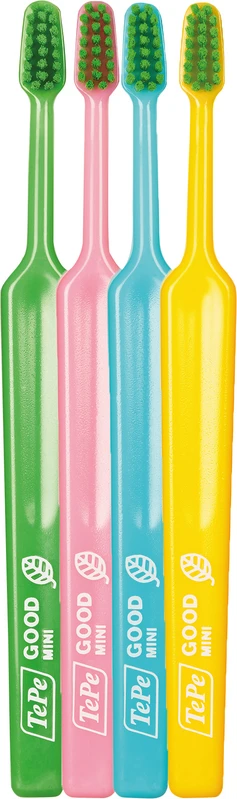 TePe® GOOD Mini Extra Soft ist Teil der einzigartigen Produktlinie TePe® GOOD und besteht aus biobasiertem Kunststoff. Sie hat einen sehr kleinen Bürstenkopf und einen kleinen Griff. Die Zahnbürste TePe® GOOD Mini Extra Soft wurde für den Einsatz vom ersten Zahn bis zum Alter von 3 Jahren entwickelt. Der kleine, schmal zulaufende Bürstenkopf hat besonders weiche Borsten für eine sanfte Reinigung. Der Griff liegt stabil in der Hand, wenn Eltern ihren Kindern beim Zähneputzen helfen möchten, ist jedoch auch gut mit kleinen Händen zu greifen.