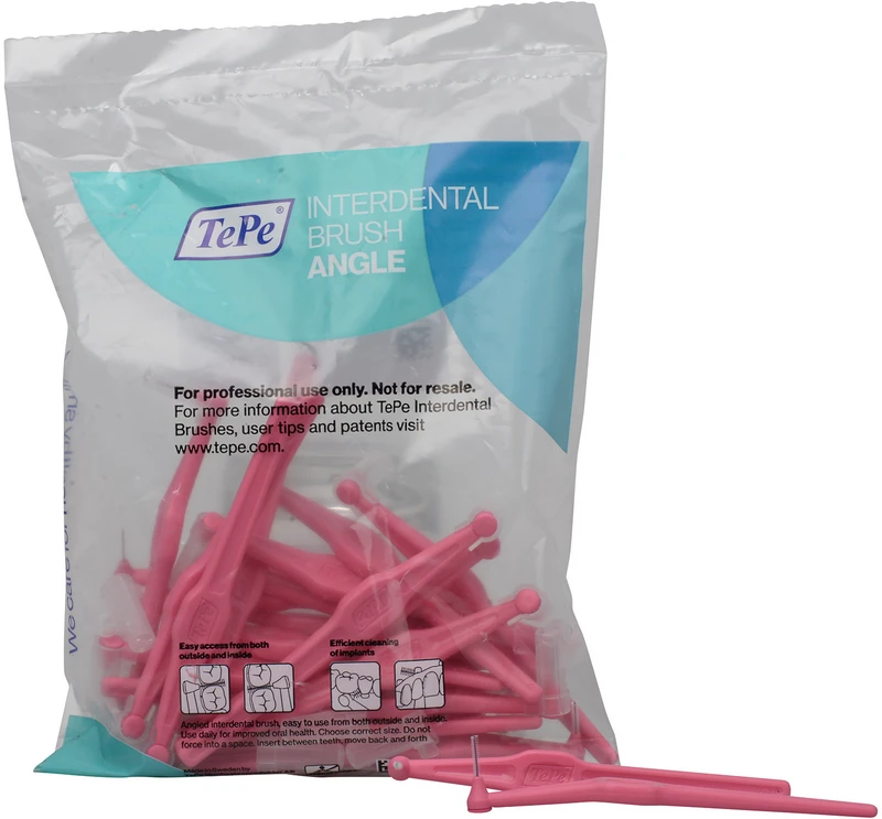 TePe® Interdentalbürsten Angle sind einfache anzuwendende Interdentalbürsten, die eine gründliche Reinigung aller Interdentalräume ermöglicht. Durch den schmalen, gewinkelten Bürstenkopf ist die Reinigung im Molarenbereich - sowohl palatinal, lingual als auch bukkal möglich. Der lange und flache Griff ermöglicht eine kontrollierte Reinigung der Interdentalräume. TePe® Interdentalbürsten Angle sind in sechs Größen erhältlich. Die Größen richten sich nach den TePe® Interdentalbürsten Original. Alle Größen haben einen kunststoffummantelten Draht zur schonenden Reinigung.