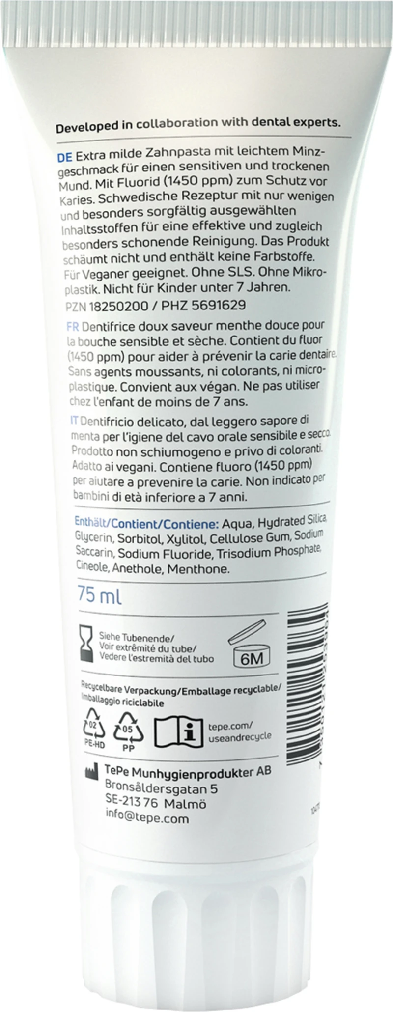 Produktinformationen "TePe® Pure Zahnpasta Tube 75 ml Minze"