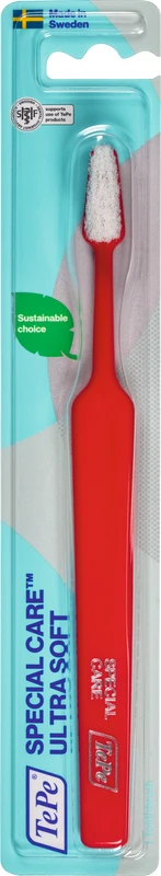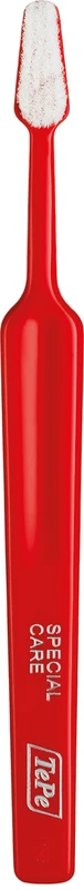 TePe® Special Care die 12.000 ultraweichen Borsten der Special Care garantieren eine sehr schonende Reinigung, vor allem nach chirurgischen Eingriffen oder bei einer extrem empfindlichen Mundschleimhaut. Die TePe® Special Care ist in zwei Bürstenkopfgrößen erhältlich. Bei Patienten mit starken Schwellungen oder bei Patienten, die nach dem Eingriff ihren Mund nicht weit öffnen können, empfehlen wir den kleineren Bürstenkopf.