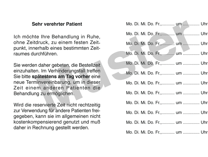 Produktinformationen "Terminvereinbarungskarte Packung 100 Stück"