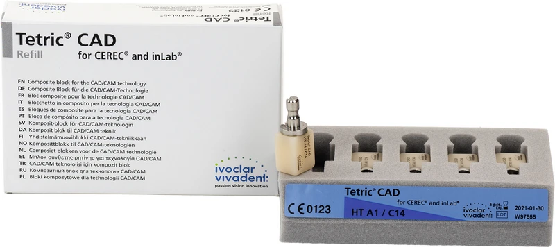 Produktinformationen "Tetric® CAD for CEREC\inLab Packung 5 Blöcke Größe C14, A1 HT"