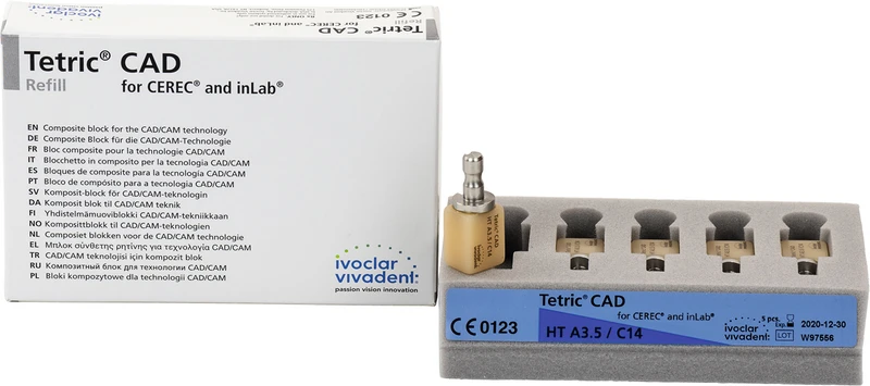 Produktinformationen "Tetric® CAD for CEREC\inLab Packung 5 Blöcke Größe C14, A3,5 HT"