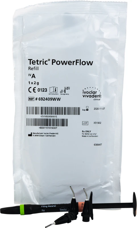 Tetric® PowerFlow ist das fliessfähige, lichthärtende und röntgenopake 4-mm-Composite mit einer Belichtungszeit ab 3 Sekunden für die direkte Füllungstherapie im Seitenzahnbereich. Erhältlich in 3 dentin-ähnlichen Universalfarben IVA, IVB und IVW.