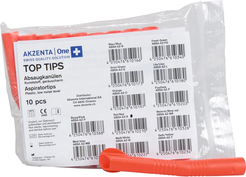 Absaugkanülen aus Kunststoff, hohe Fertigungsqualität. Geräuscharm geformt mit breitem Schild, rutschfeste Oberfläche, gute Ergonomie, liegt daher leicht und gut in der Hand. Mattierte Oberfläche (keine störenden Lichtreflexe). Sterilisierbar in der Autoclave bis 134 °C.