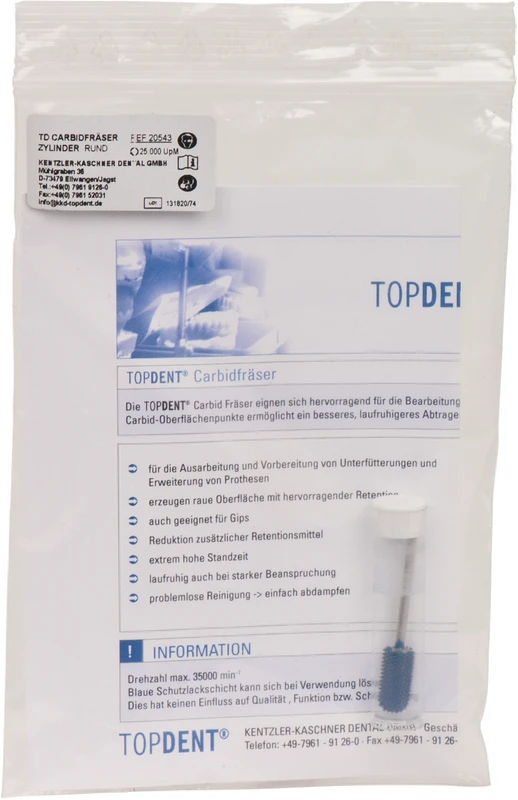 TOPDENT Carbid PIRANHA Stück Zylinder rund, 16 mm