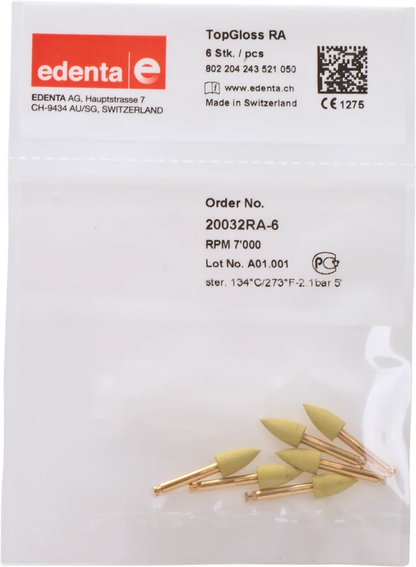 TopGloss Packung 6 Stück gelb, RA, Figur 243, 10 mm, ISO 050